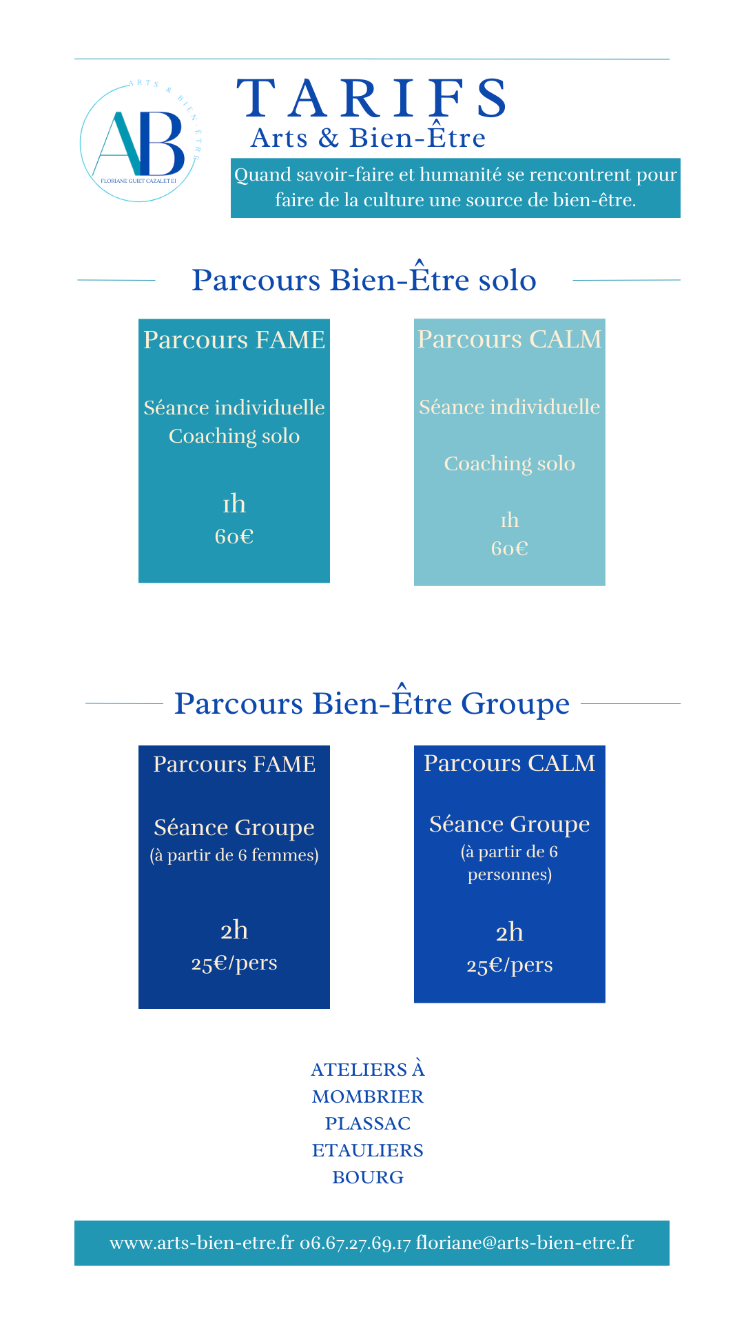 Tarifs Cours | Ateliers | Stages
